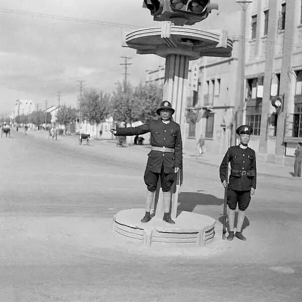 南京,中华路上的交通警察。志波杨村/摄,照片大约拍摄于1940年左右。