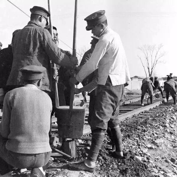 山西,工作中的铁路工人。志波杨村/摄,照片大约拍摄于1940年左右。