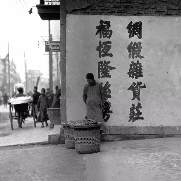 街边的商贩。志波杨村/摄,照片大约拍摄于1940年左右。