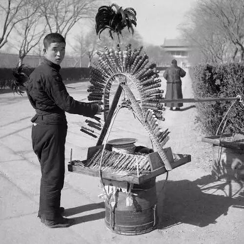 北平,天安门前卖糖葫芦的小贩。志波杨村/摄,照片大约拍摄于1940年左右。