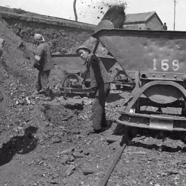 河南新乡或者是焦作的煤矿,工人卸煤。志波杨村/摄,照片大约拍摄于1940年左右。