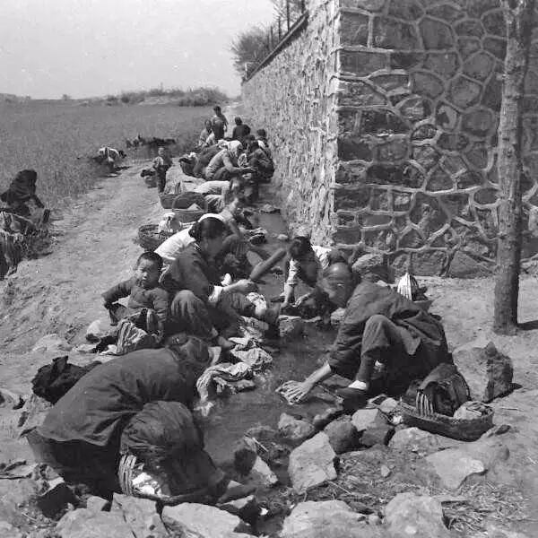 河南新乡或者是焦作,妇女们洗衣服。志波杨村/摄,照片大约拍摄于1940年左右。