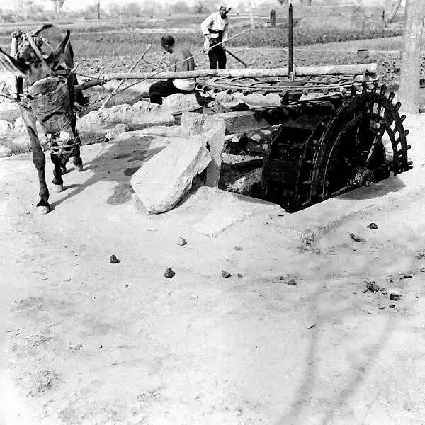 山西省,马拉水车汲水。志波杨村/摄,照片大约拍摄于1940年左右。