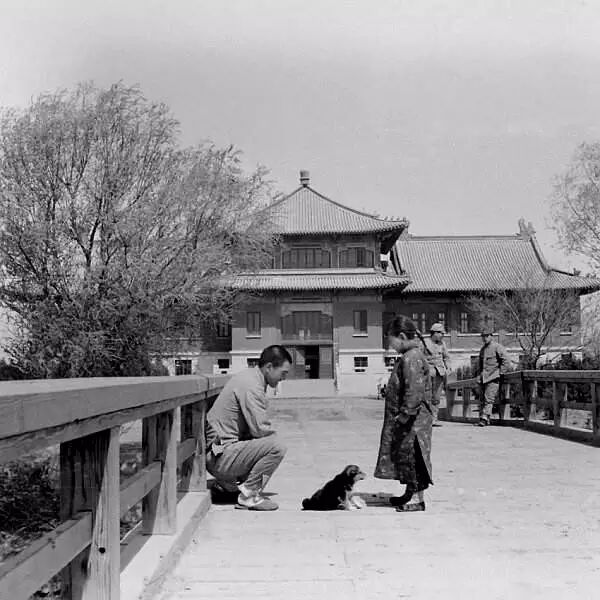 主人与狗。志波杨村/摄,照片大约拍摄于1940年左右。