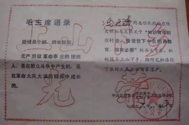 为了解决青年学生的出路,毛泽东在1968年12月发出了当时被称为“最新最高指示”的战略性言论:知识青年到农村去,接受贫下中农的再教育,很有必要。