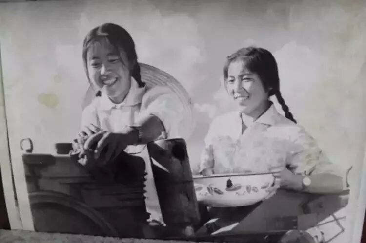 1973年8月,兵团一团天津知青张淑贤(左)、鹤岗知青张桂香下连放电影。