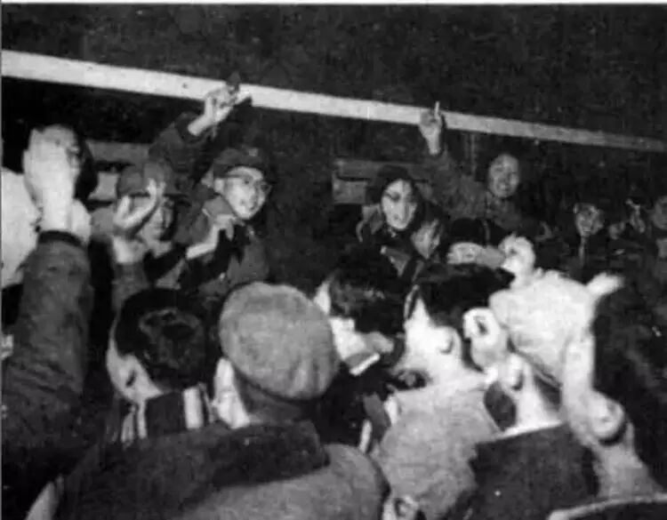1975年1月,北京青年姜大明(毛主席像左面)等人欢呼四届人大召开!