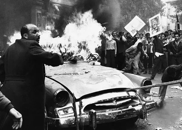 1961年2月15日,埃及开罗,愤怒的人们点燃美国大使馆的一辆汽车,抗议刚果首位民选总理帕特莱斯·卢蒙巴遇害,很多人认为他的遇害与美国有关。