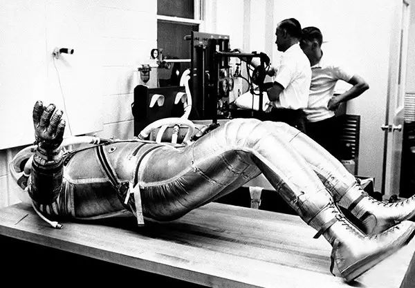 1964年10月30日,安装在假人肚子里的仪器,用来测试阿波罗探月航天飞船上的设备。