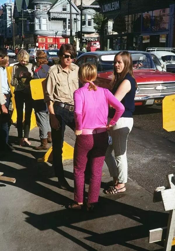 1967年,美国旧金山,街上正在闲聊的青年男女。