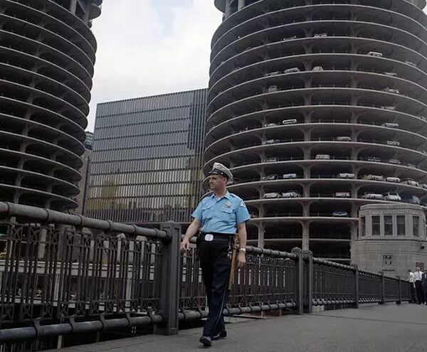 1964年6月19日,美国芝加哥,正在巡视的警察。