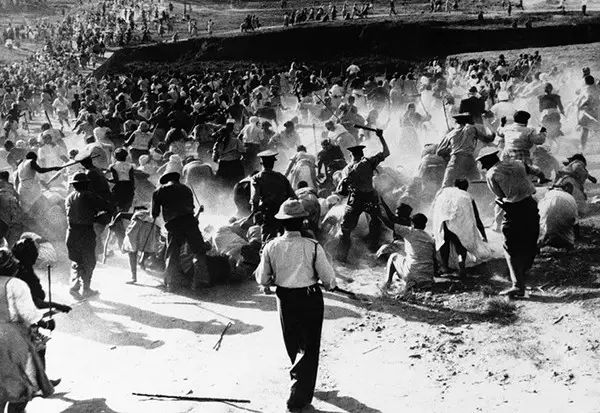 1962年4月17日,南非德班,当地妇女放火烧了一家啤酒馆以此来抗议阻碍她们家庭酿酒活动的规定, 遭到警察殴打。