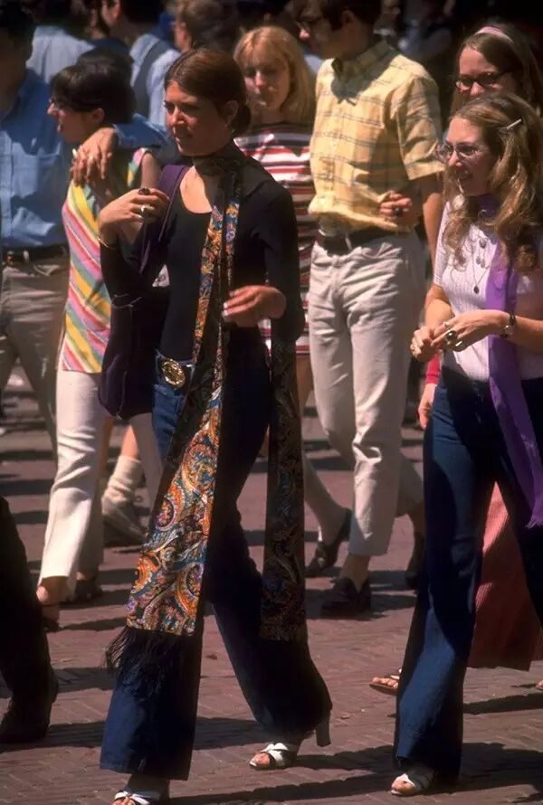1969年 ,纽约,穿着流行时尚服饰的人群。