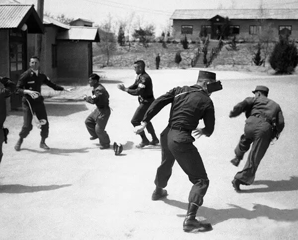 1961年4月23日,朝鲜板门店,在军事停战委员会的一场会议过后,联合国盟军指挥部的美国士兵与朝鲜警卫发生争吵并大打出手。