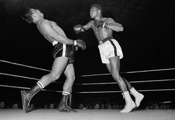 1961年10月7日,美国肯塔基州路易斯维尔,电视直播的拳击赛进入第六轮,卡休斯·克雷挥拳击中阿根廷人亚历克斯·米托夫。