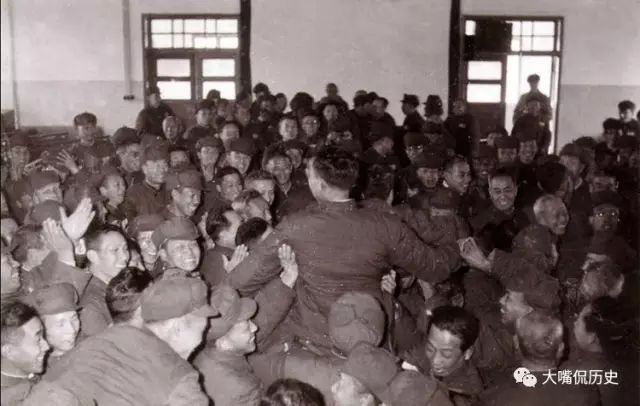 29、1956年,日本战犯听说被特赦后都高兴地拍手大笑,一片欢腾。