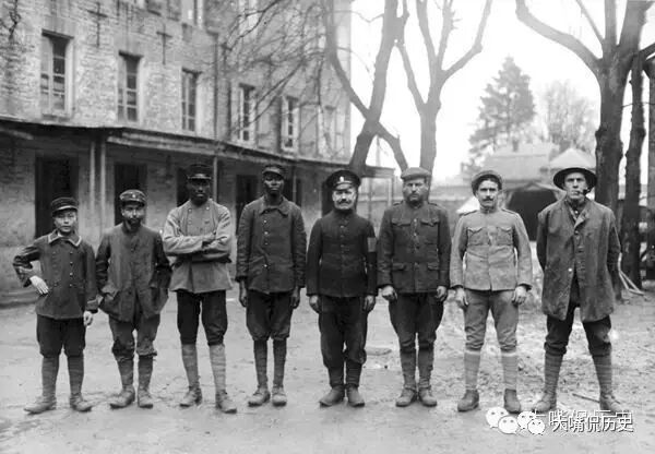 21、一战期间德国的战俘营里可谓是个联合国部队。左起越南,突尼斯,塞内加尔,苏丹,俄罗斯,美国,葡萄牙、英国。