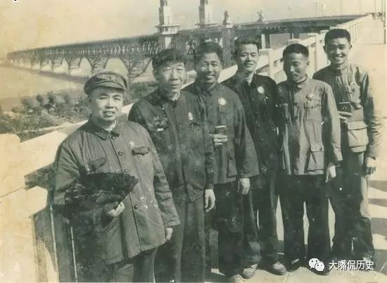 8、南京长江大桥竣工,许世友上将负责检验大桥质量,带了一队坦克过去验桥。图为验桥前一天许世友上将与大桥工作人员合影。