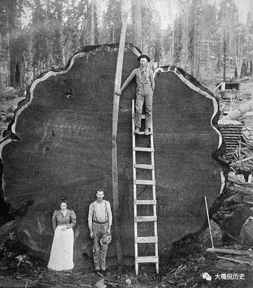 32、20世纪初,加州红木伐木工。这树真的好大啊!