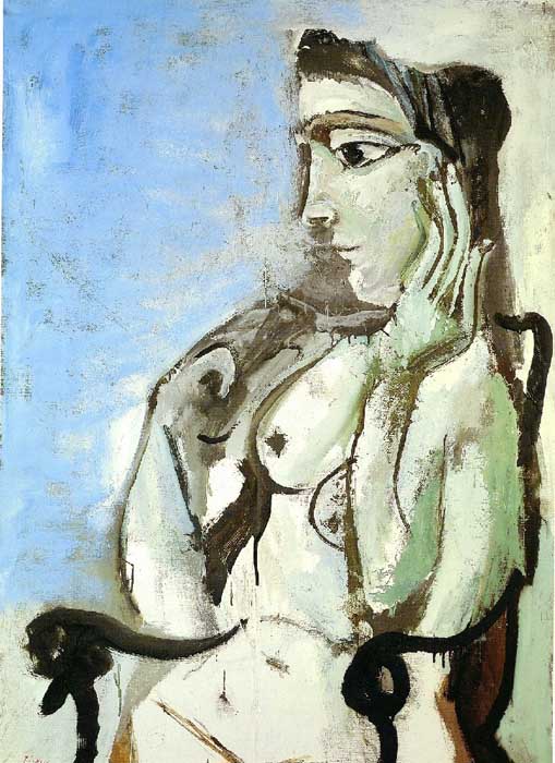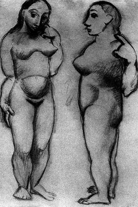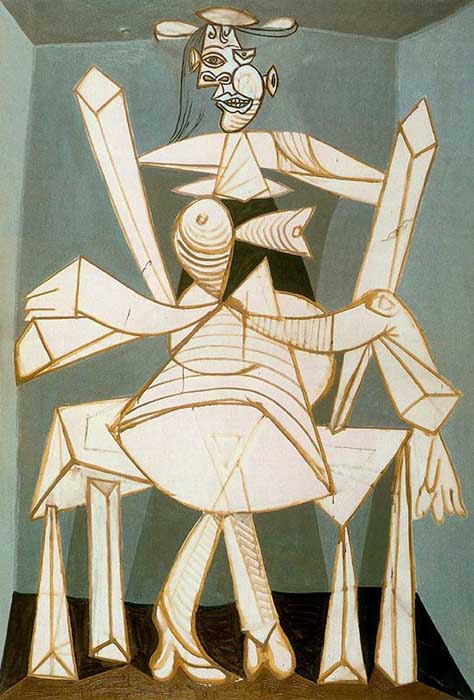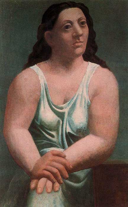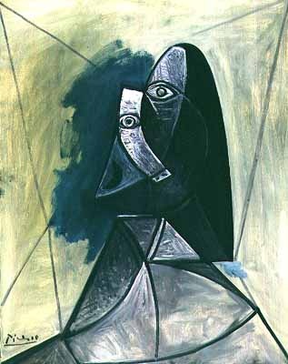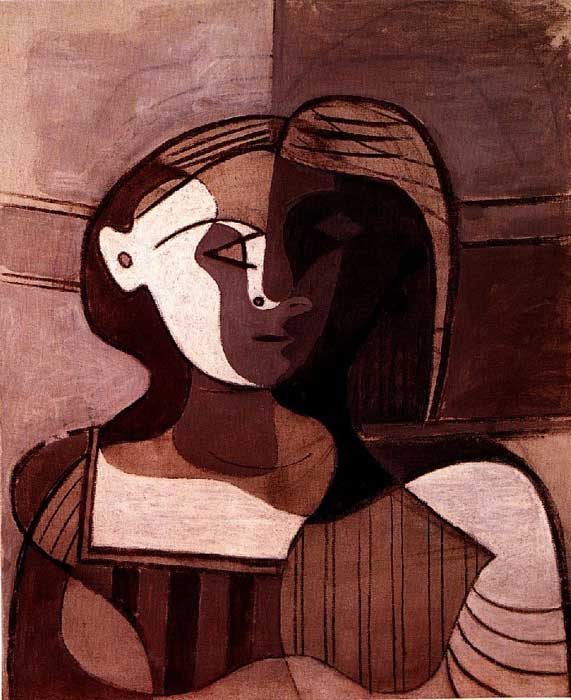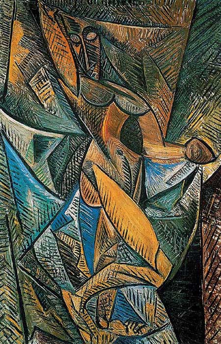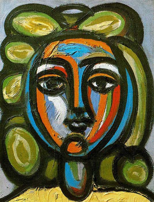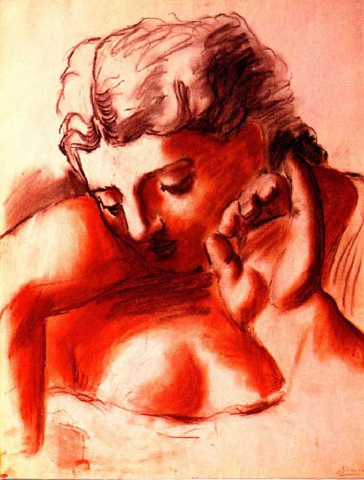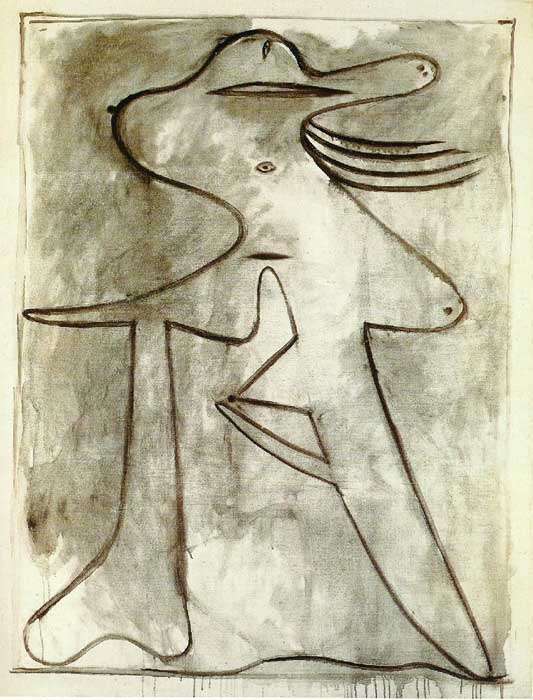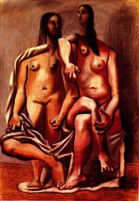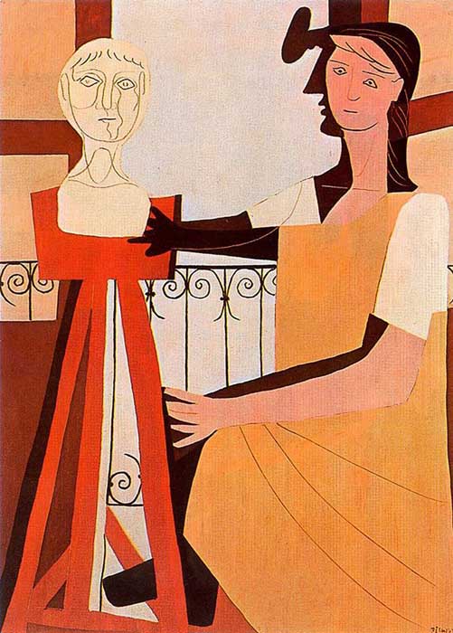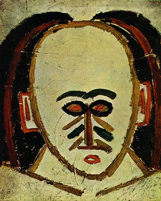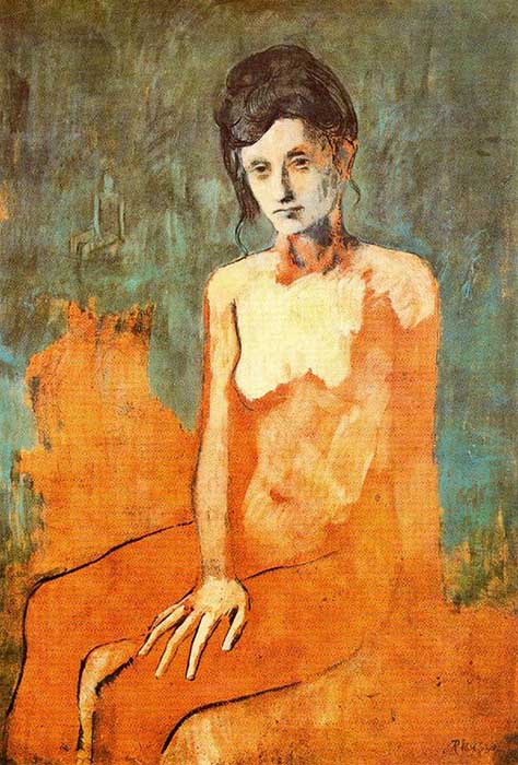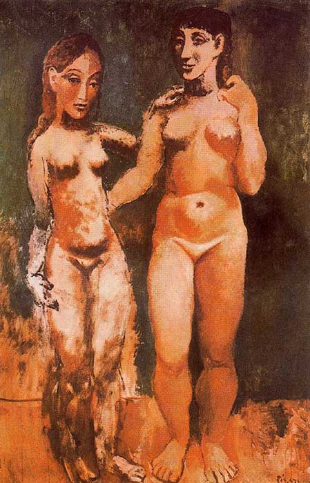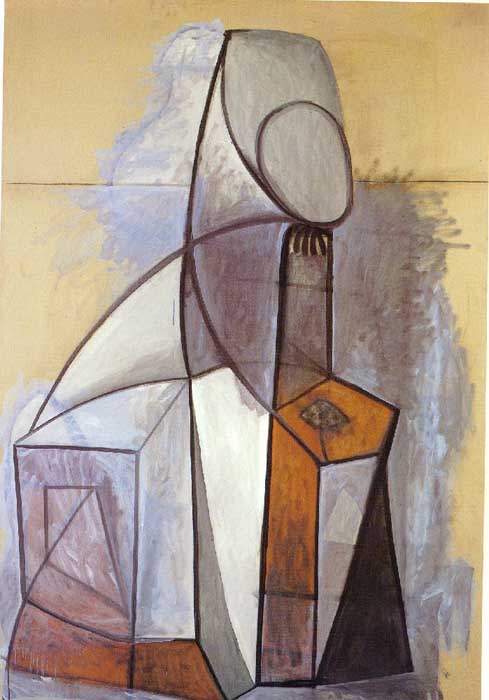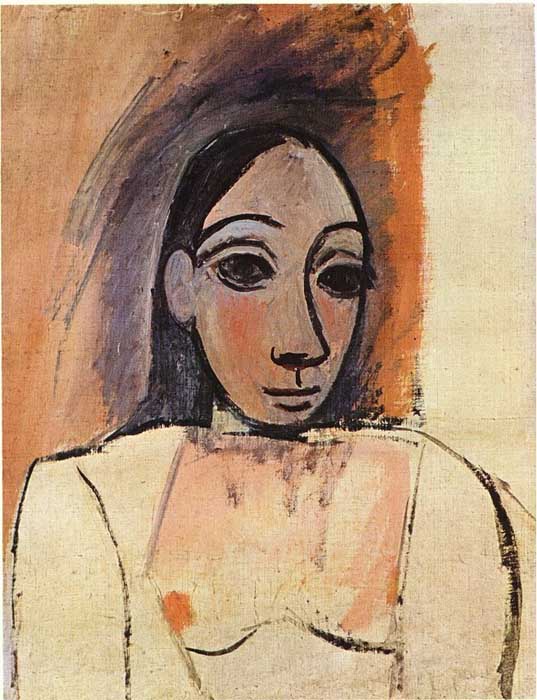 这是毕加索黑人时期的作品,粗大的造型如同雕像一样简练,没有偶像的背景和与主题无关的任何细节。