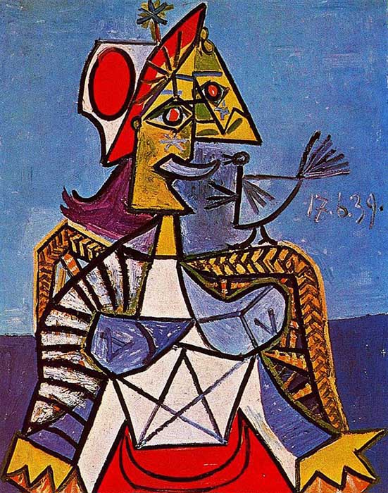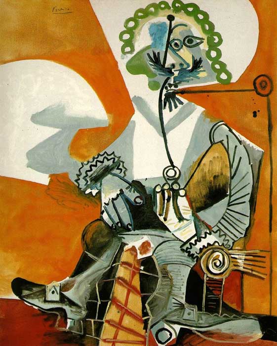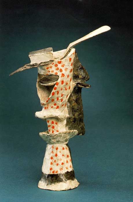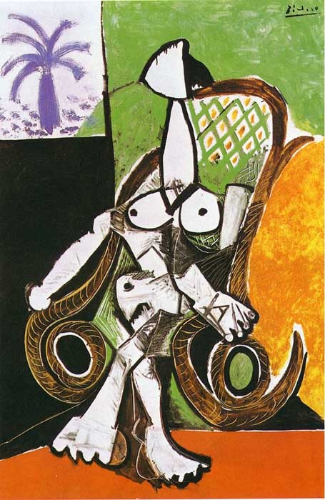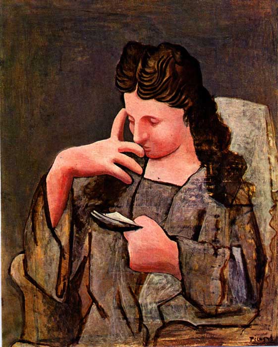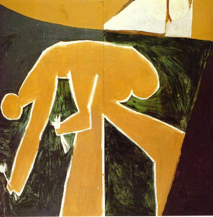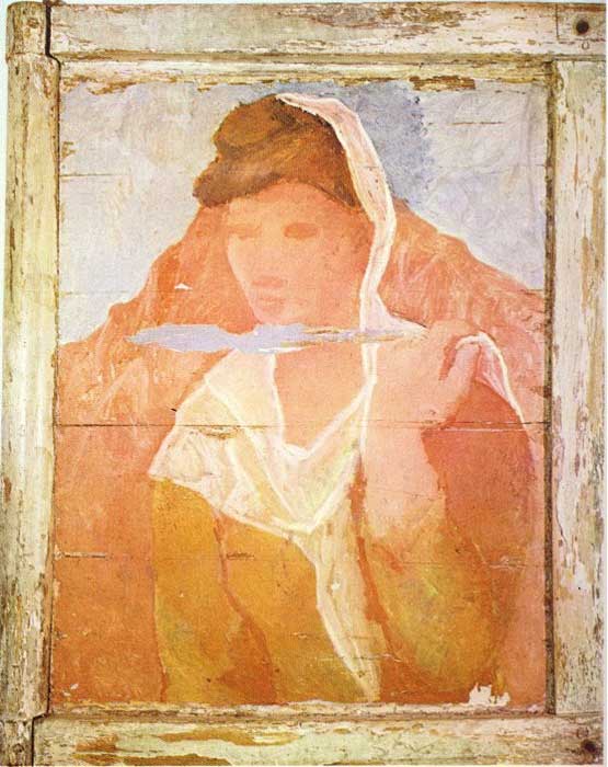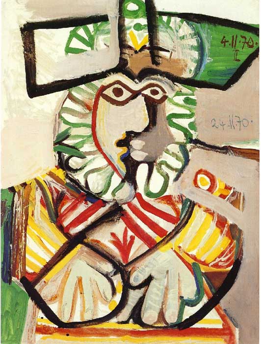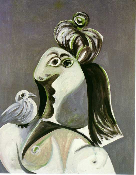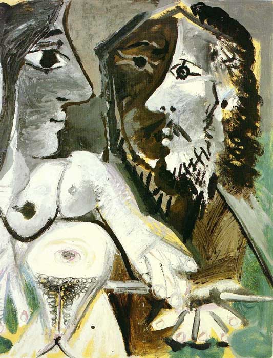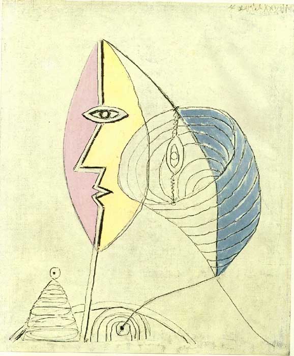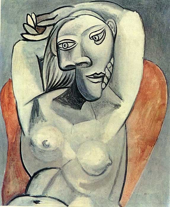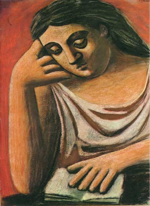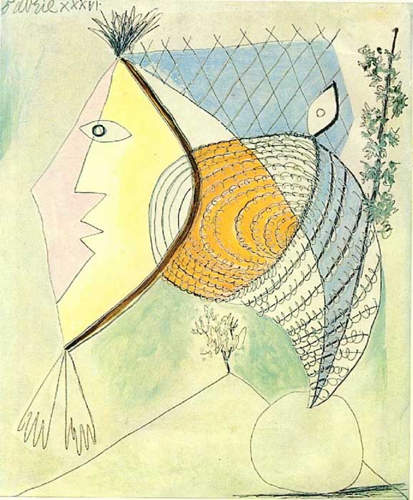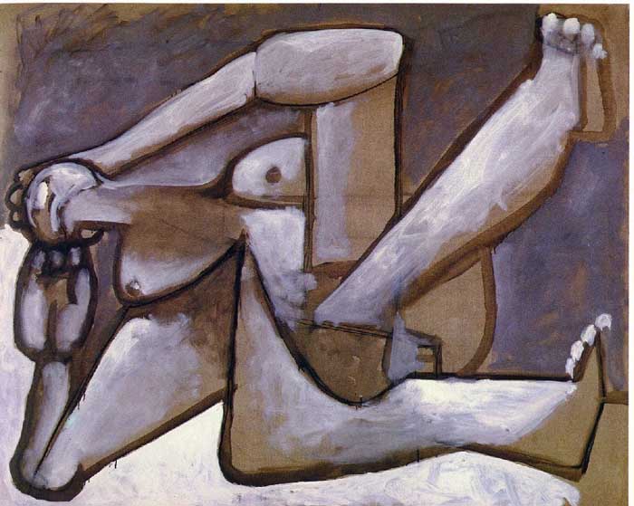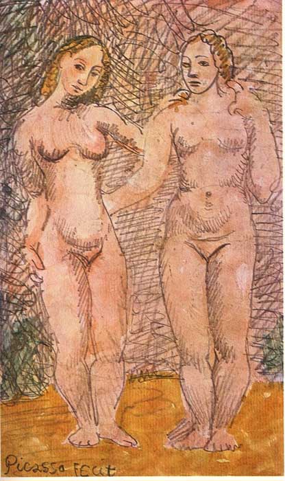 这是毕加索黑人时期的作品,粗大的造型如同雕像一样简练,没有偶像的背景和与主题无关的任何细节。