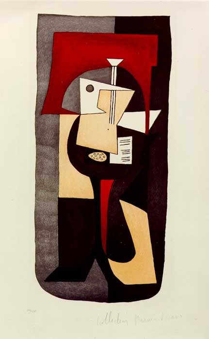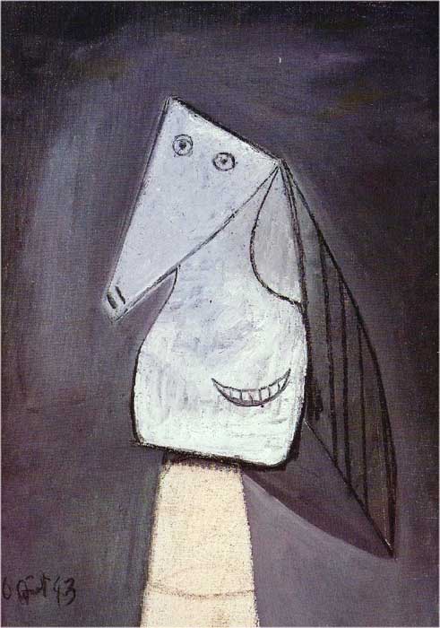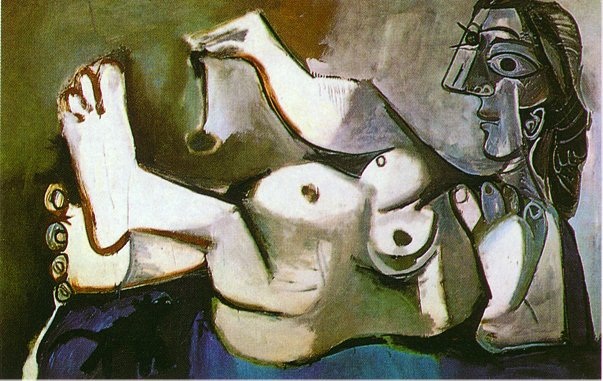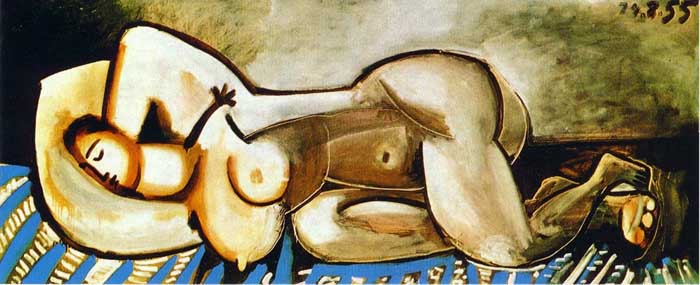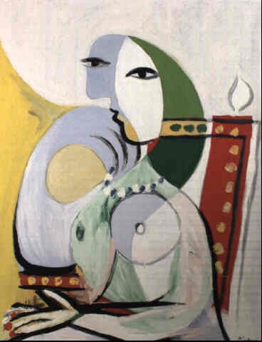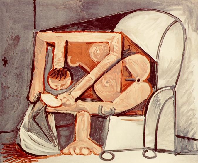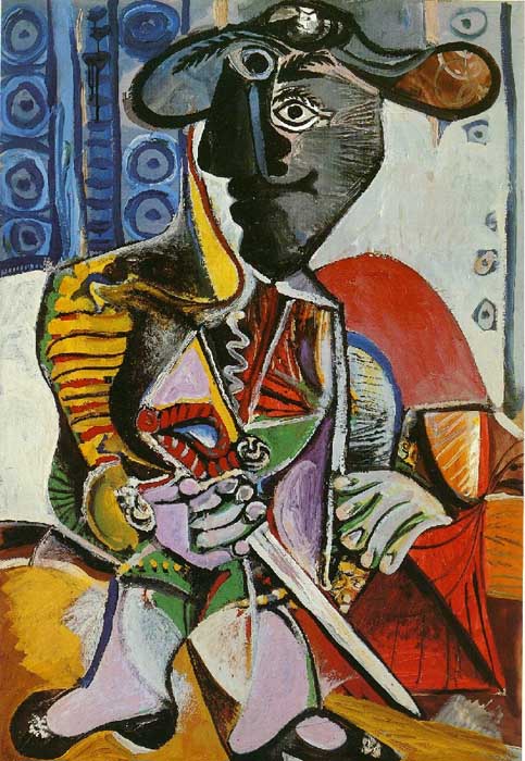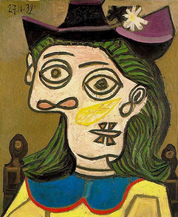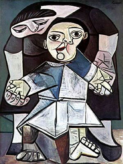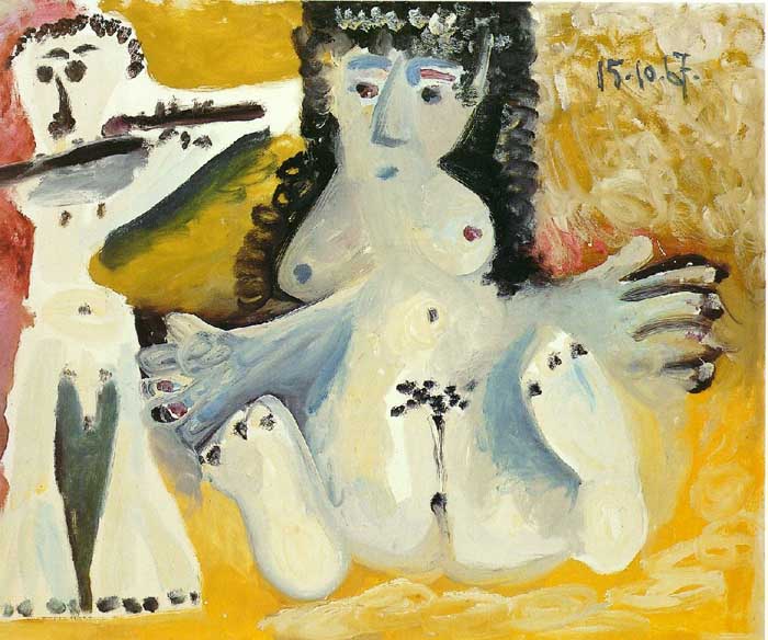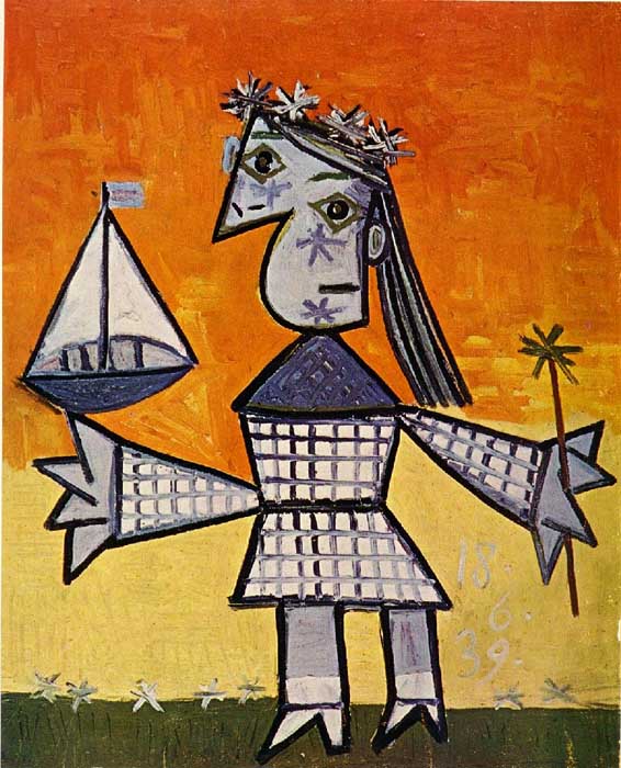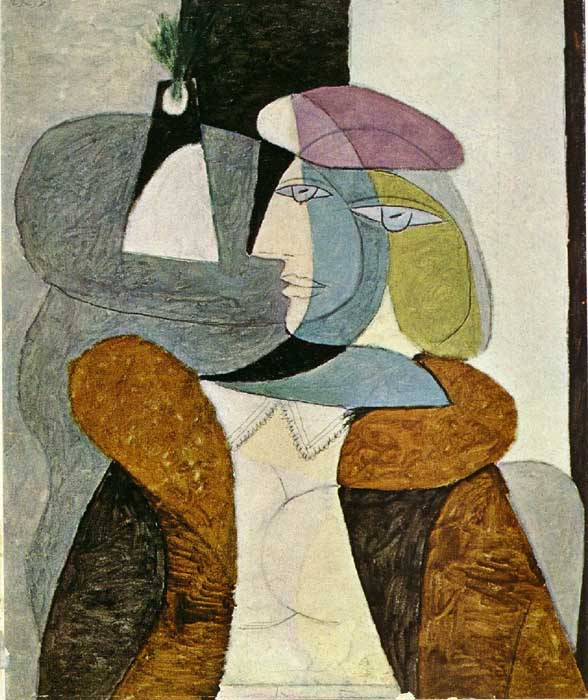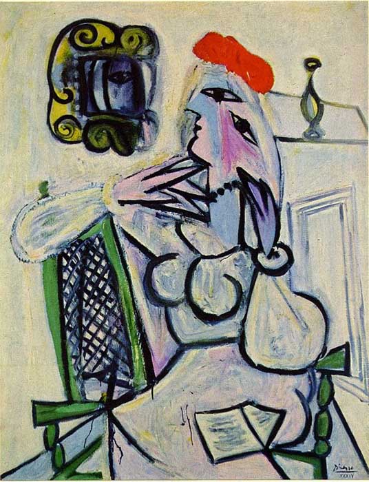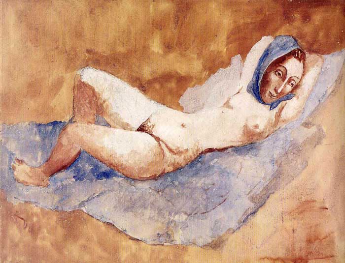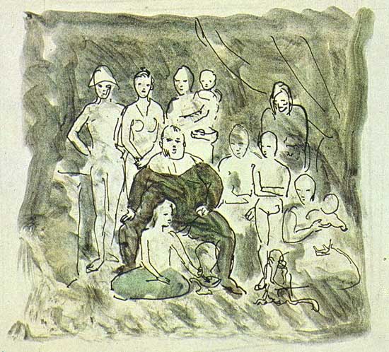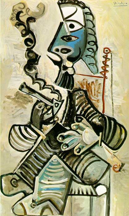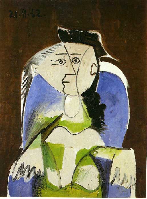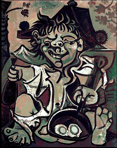 这是毕加索黑人时期的作品,粗大的造型如同雕像一样简练,没有偶像的背景和与主题无关的任何细节。