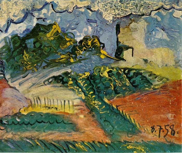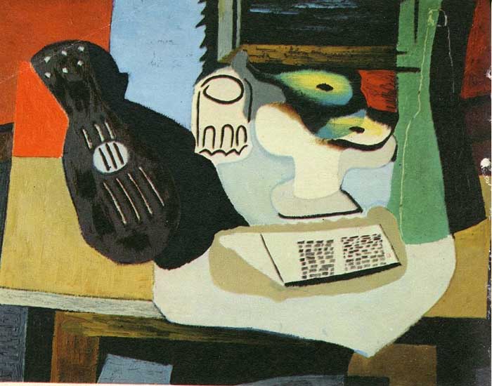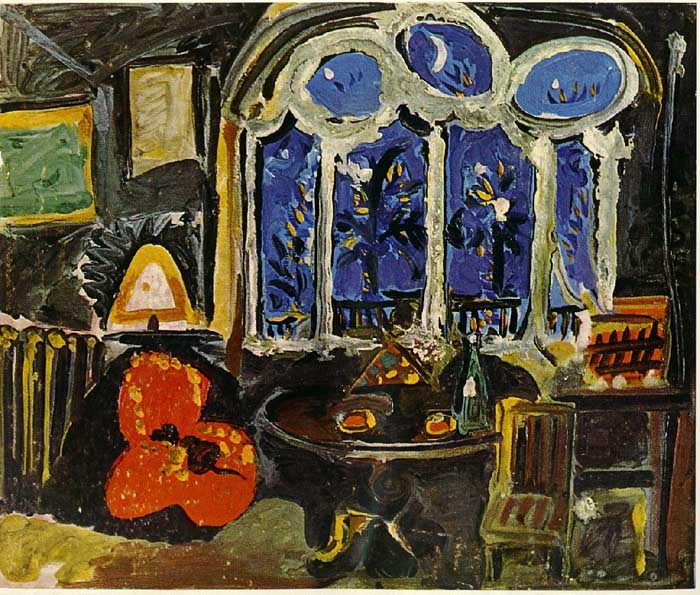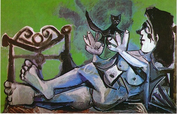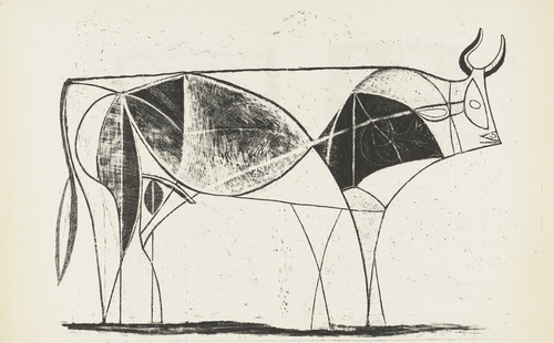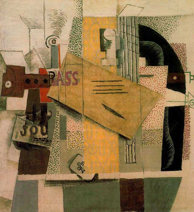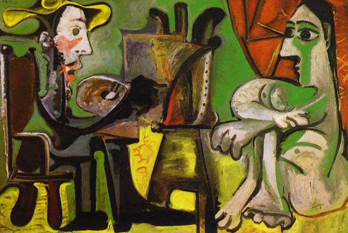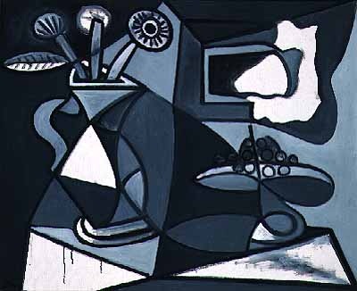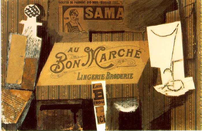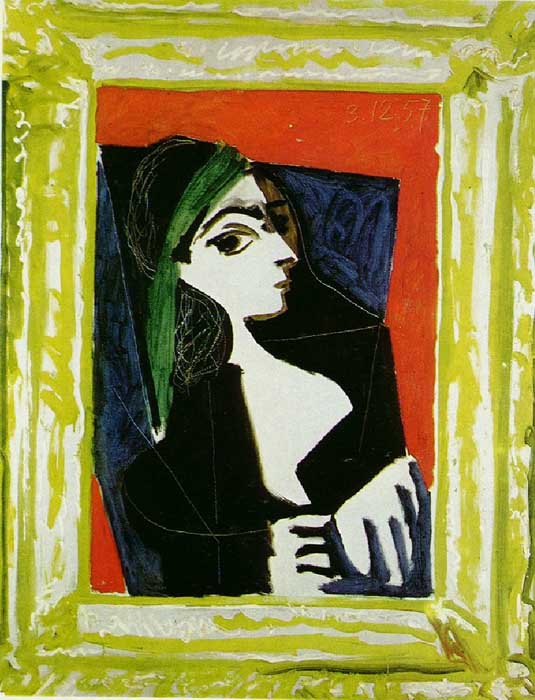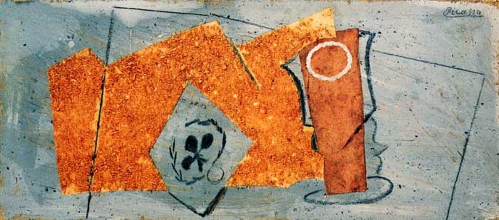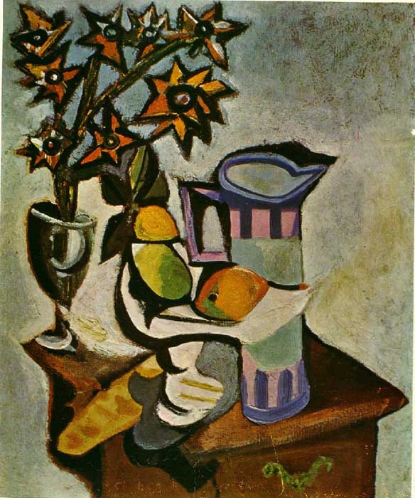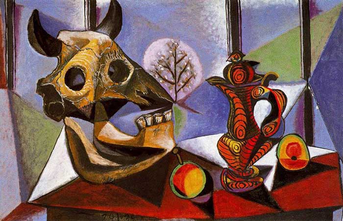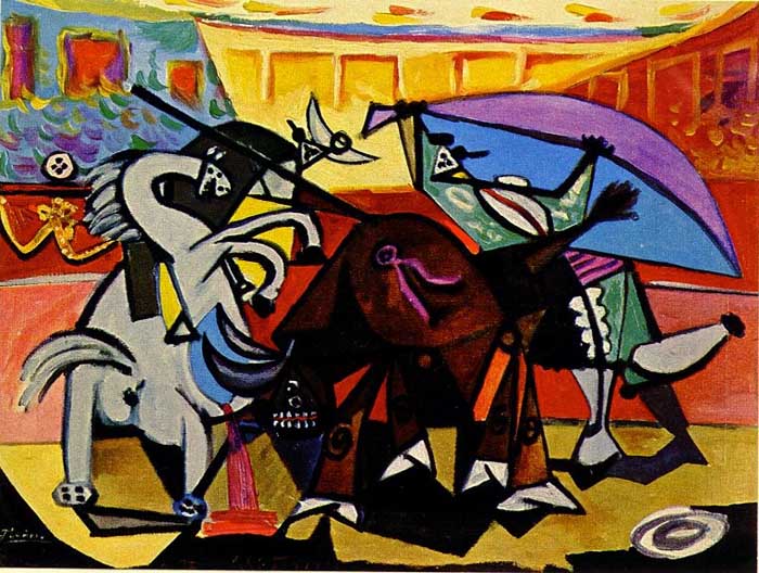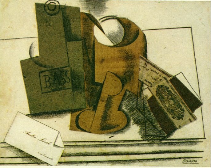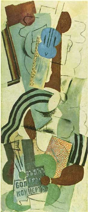 1906年,毕加索结识了马蒂斯。他从这位野兽派泰斗那里发现了黑人雕刻,从此迷上了黑人雕刻,并吸收其艺术精华融入自己的作品中去。这年,毕加索将调色板上的胭脂洗掉,换上灰褐色的颜料,为美国女作家斯坦因画肖像。这幅《斯坦因画像》,是毕加索从玫瑰红时期跃入立体主义时期的跳板,即受到原始艺术的影响,也注意了几何学的基本形,画中的手是写实的,而脸却似土著面具式的形象。