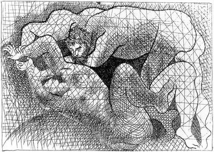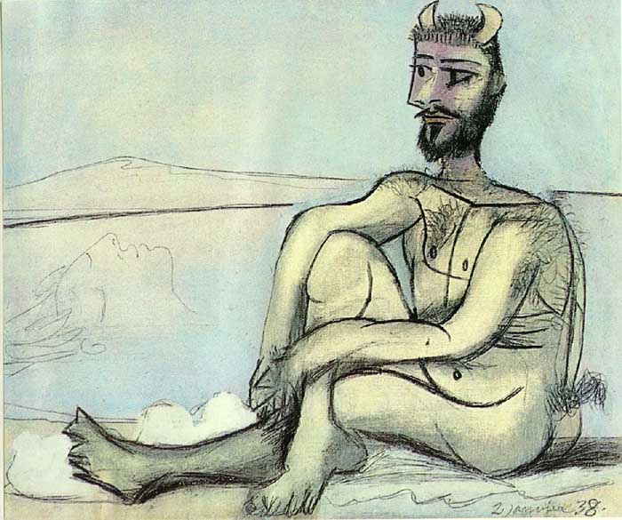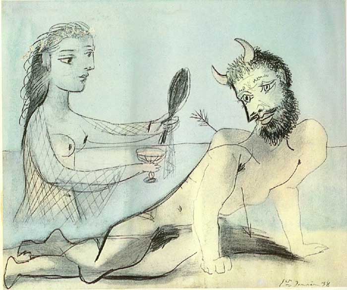 受伤的弥诺陶洛斯(牛头人)和裸女
