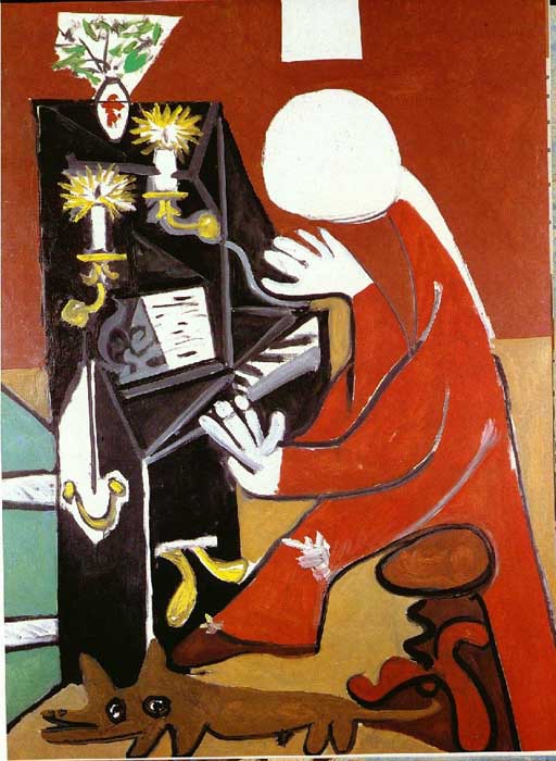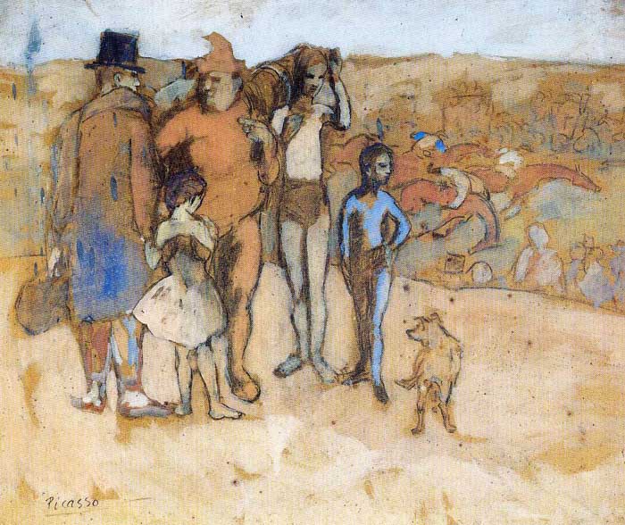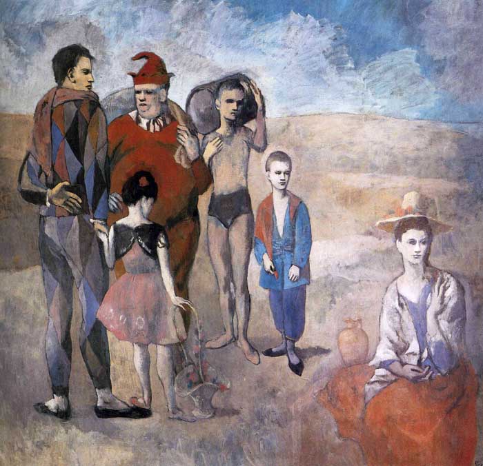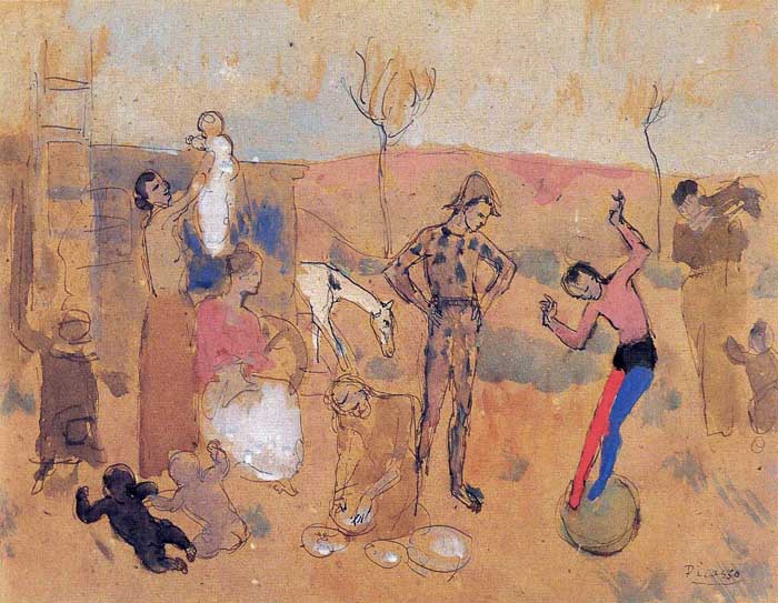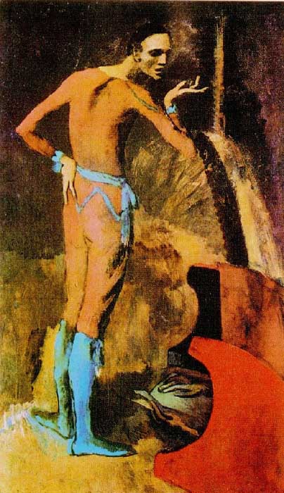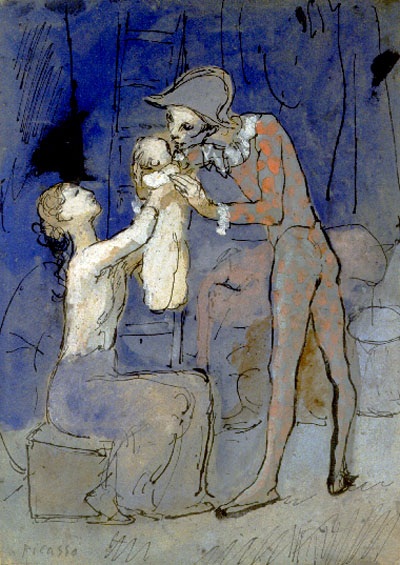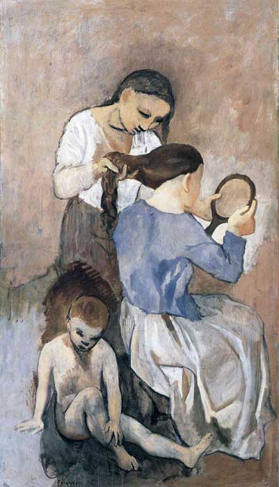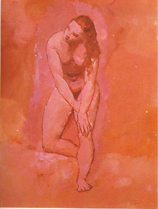 这是毕加索粉红时期的作品,粉红色开始成为毕加索他的画布上主要的颜色。