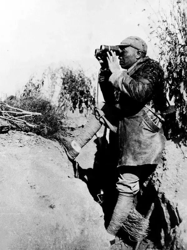 1940年,百团大战中,八路军副总司令彭德怀在前线哨所观察敌情,这里距离敌人阵地只有500米。