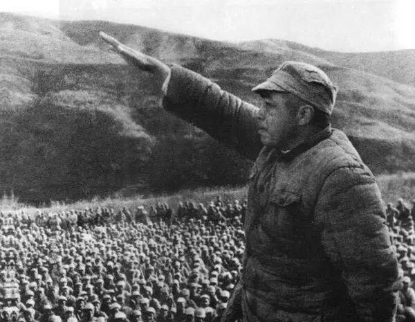 1947年3月,彭德怀司令员在延安保卫边区动员大会上讲话。