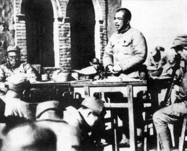 1939年10月,山西省武乡县,彭德怀在十八军干部工作会议上做《国际新形势与中国抗战》报告。
