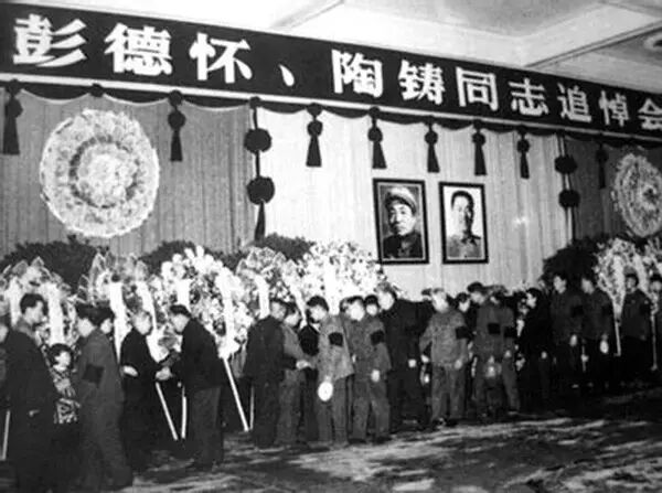 图为彭德怀、陶铸追悼会现场。