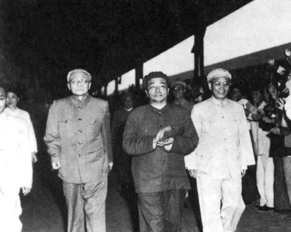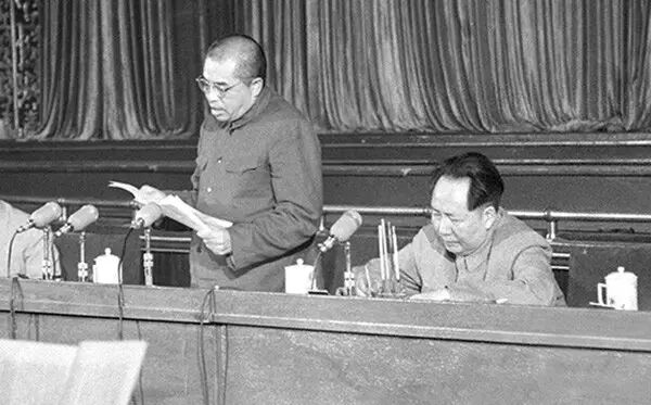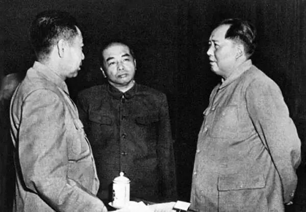 1956年9月,时为中共中央政治局委员的彭德怀和毛泽东主席、周恩来副主席在中国共产党第八次全国代表大会上。