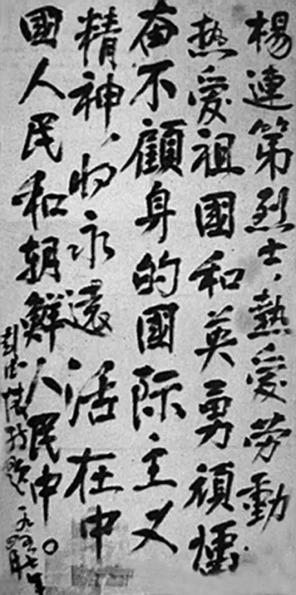 1957年4月,彭德怀为中国人民志愿军一级战斗英雄杨连弟题词。