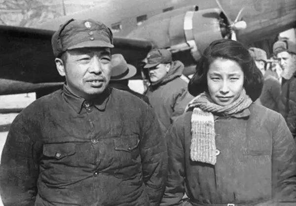 1945年,延安,彭德怀与浦安修在机场。