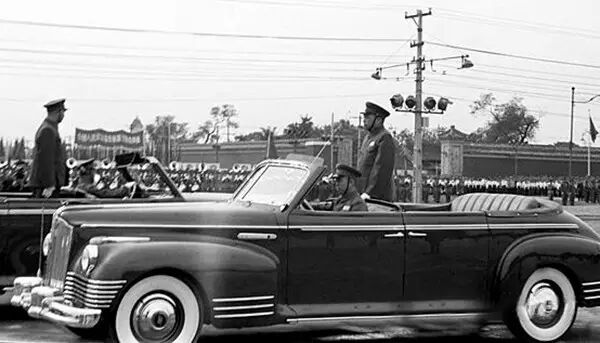 1954年10月1日,国庆阅兵,阅兵指挥官、中国人民解放军京津卫戌司令部副司令员杨成武(左)向国防部部长彭德怀(右)报告。葛力群/摄。