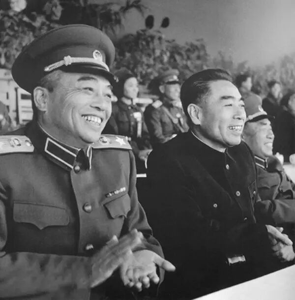 彭德怀、朱德和周恩来总理在大会主席台上观看开幕表演。