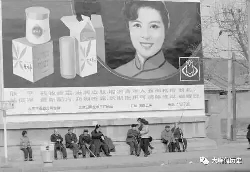 北京街头最早出现的一幅大型化妆品广告,当时这幅手绘广告画的视觉冲击力极大。