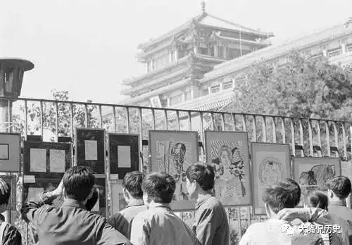 1979年9月,在中国美术馆外展出的来自民间的街头美术展览。此展览与同时期的“四月影会”、“无名画会”的迎春画会展,文学创作中的《班主任》等等共同构筑了新时期文化艺术的回归与觉醒。