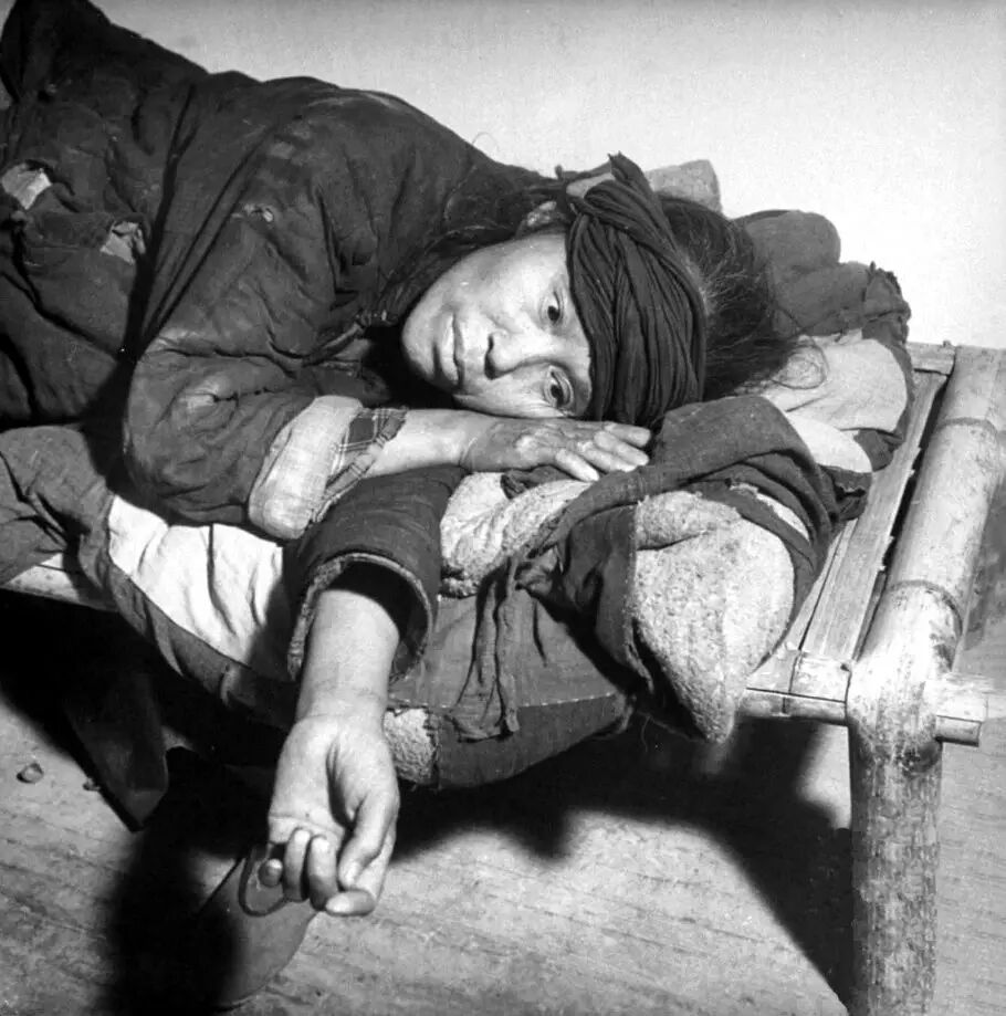 1945年,广西柳州,躺在病床上的一个难民。杰克·威尔克斯/摄。
