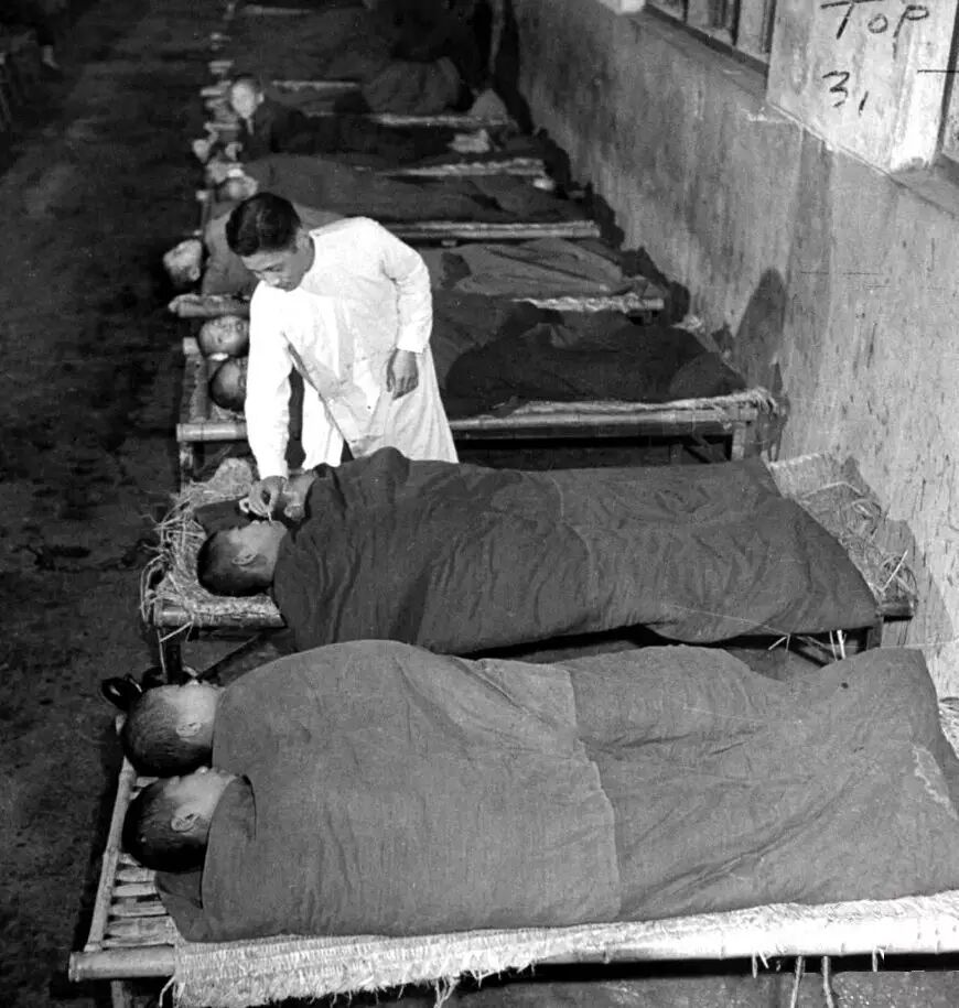 1945年,上海,医生在乞丐营医院检查病人。杰克·威尔克斯/摄。