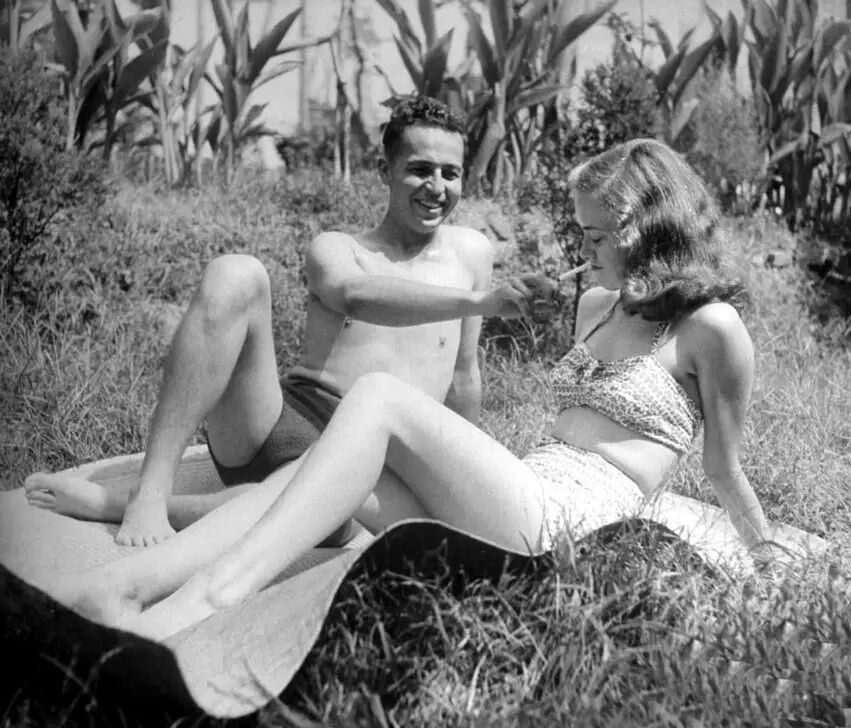 1945年10月,重庆,帕霍伊特和女友在草坪上晒太阳。杰克·威尔克斯/摄。