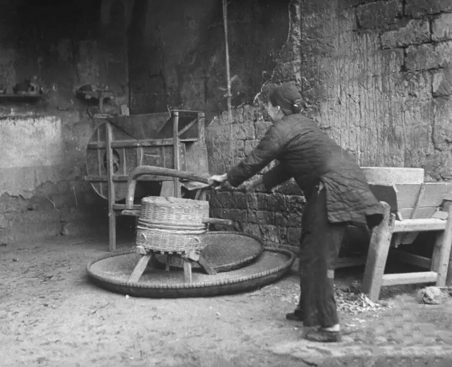 1945年,一名正在磨稻谷的妇女。杰克·威尔克斯/摄。