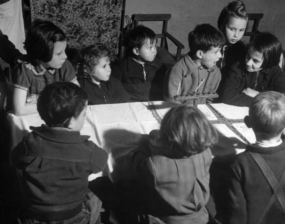 1945年,上海,犹太儿童在孤儿院庆祝光明节。杰克·威尔克斯/摄。