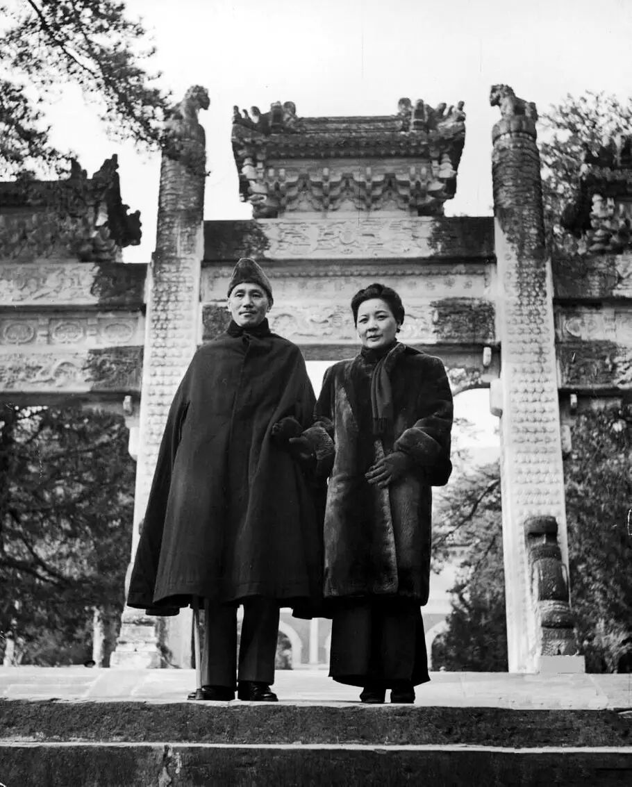 1945年12月,北平,蒋介石和宋美龄在碧云寺。杰克·威尔克斯/摄。