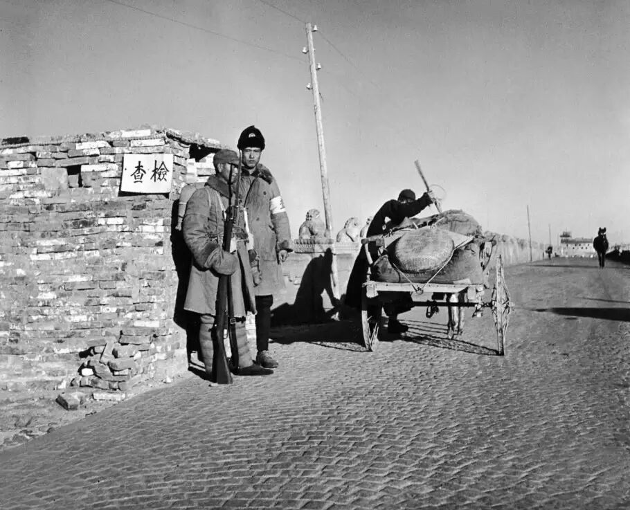 1945年,北平,国军士兵在卢沟桥站岗。杰克·威尔克斯/摄。