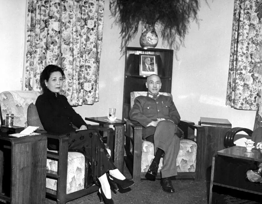 1945年11月,重庆,蒋介石和宋美龄坐在自己家的客厅里。 杰克·威尔克斯/摄。