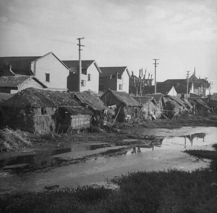 1945年,失去家园的难民在河边搭建的棚屋。杰克·威尔克斯/摄。