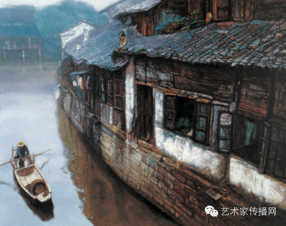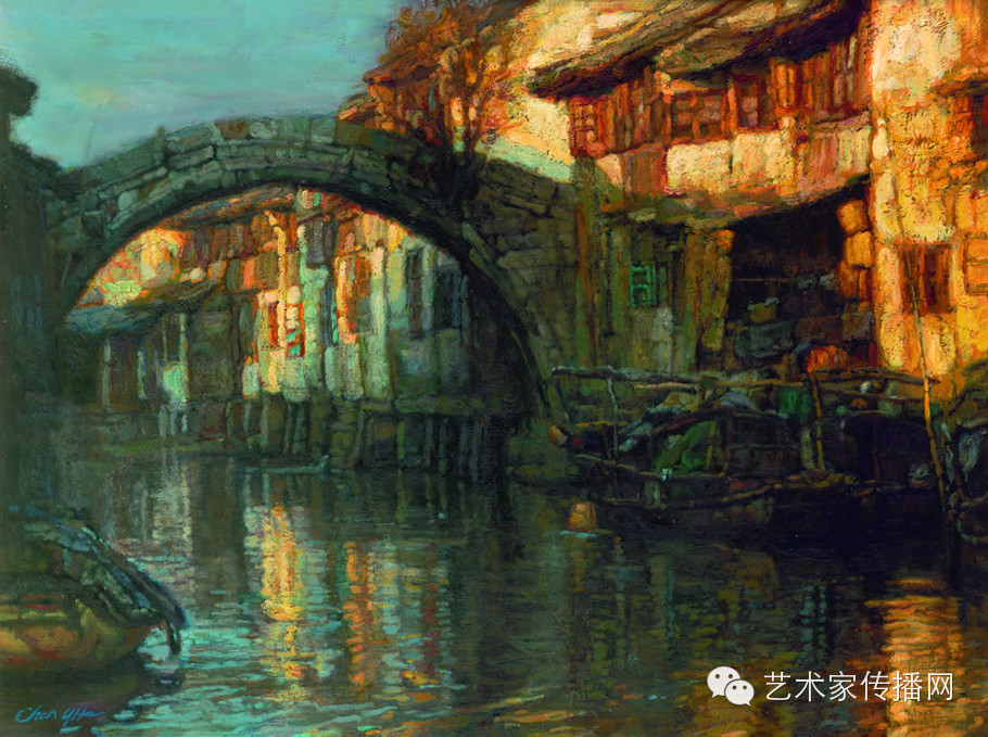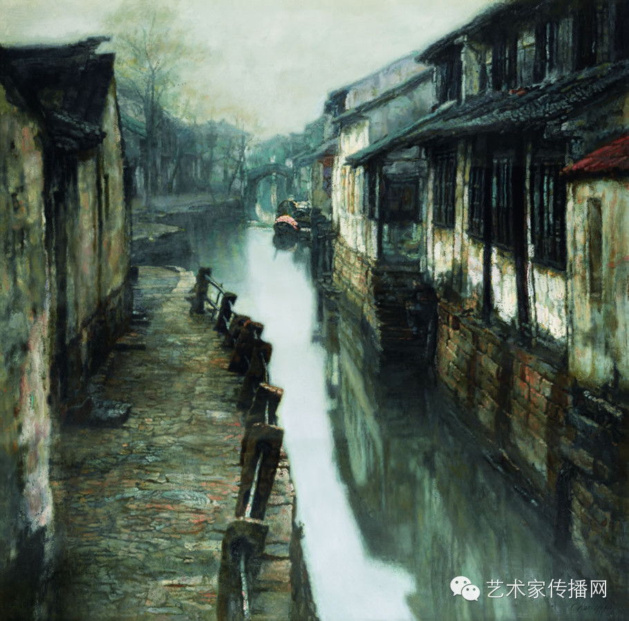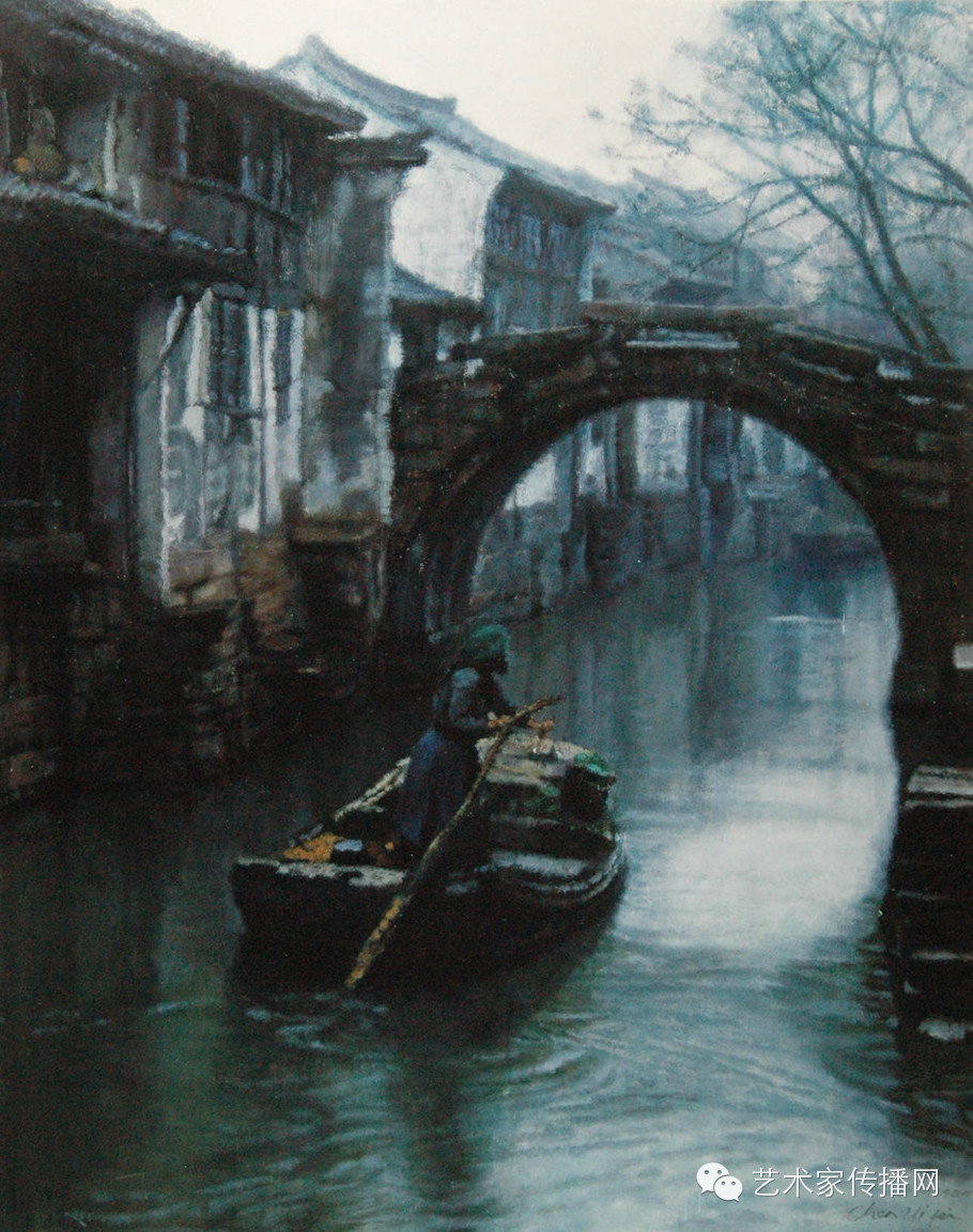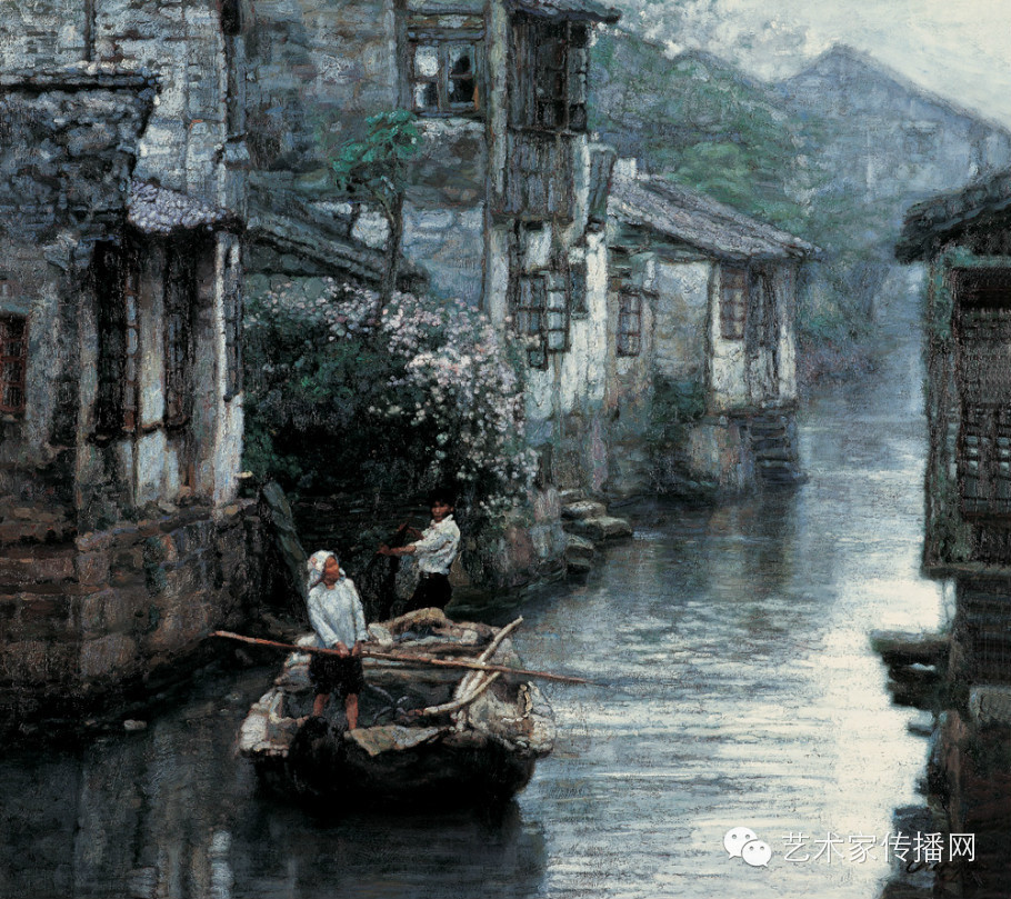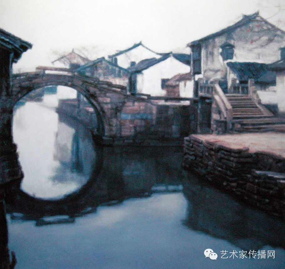 建议他以照片上的水乡为素材创作油画。于是,黑白色的周庄在陈逸飞的笔下幻变成色彩斑斓的梦里水乡,周庄不仅让他的第一次画展取得了成功,更令他对从未谋面的周庄产生了一种扑朔迷离的亲切感。